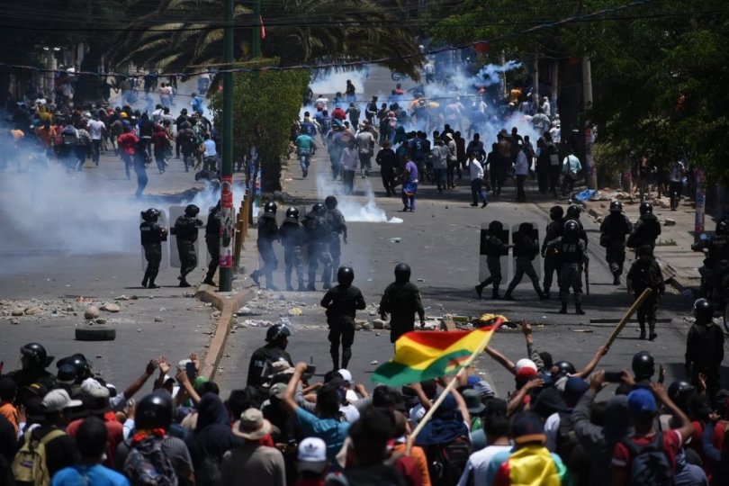 The protests built upon pre-election cabildos (public mass meetings that claim to speak for the city or region) held in Santa Cruz, Cochabamba, La Paz, Tarija, and Potosí. These meetings all pledged to defend “February 21” and “democracy.” That is, they promised to uphold the 2016 referendum vote denying Morales the right to run for a fourth term, and to defend the 2019 vote from any fraud or manipulation. Many Bolivians were ready to take to the streets on a moment’s notice after the elections.