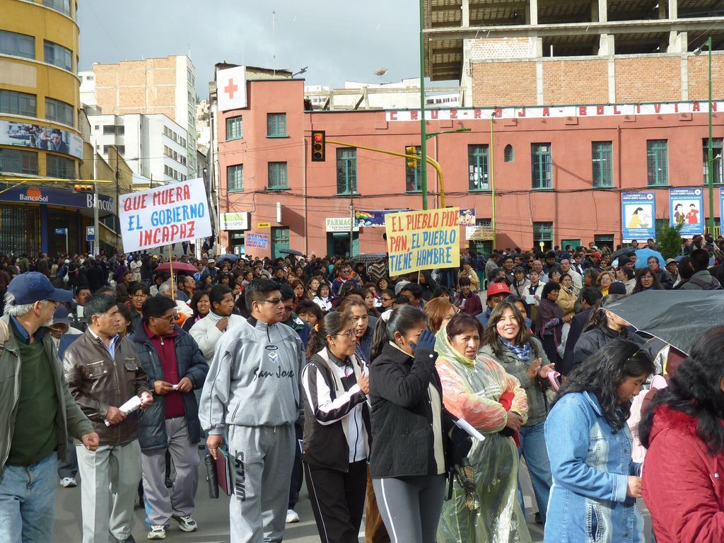Eighteen months ago, when I was applying for funds to conduct research in Bolivia, one of the criticisms I had to respond to was this: How do you know that mass protest events will be going on while you’re there? In the end, I resorted to putting a table of recent events of large-scale space-claiming protests in my two focus cities in my proposal to make this point: there has not been a 12-month period without such protests since last century.